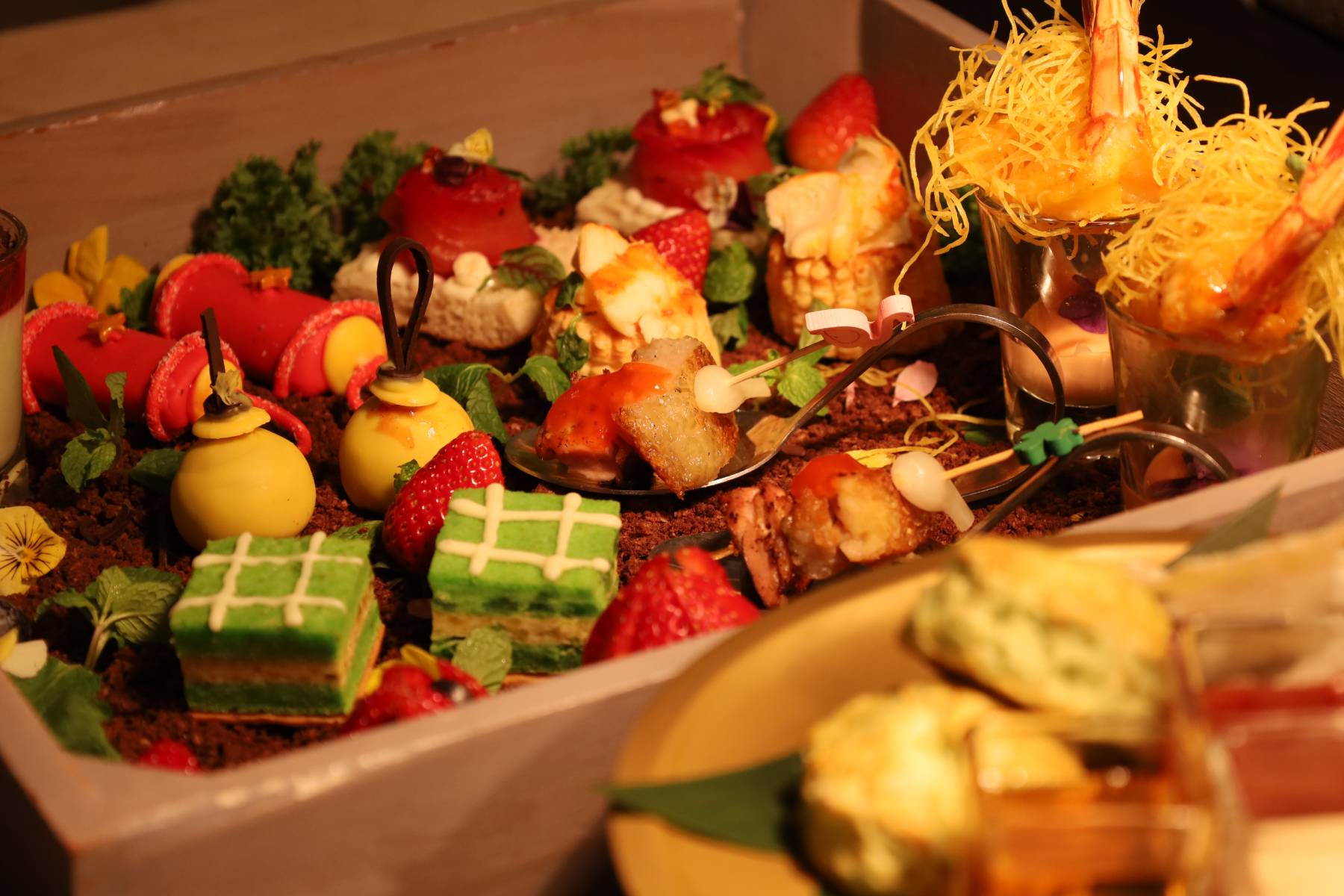 Thưởng thức set trà chiều Vườn Xuân với n hững món bánh xinh xắn được tạo hình giống khu vườn cổ tích vào mùa vụ gặt hái đầu xuân.